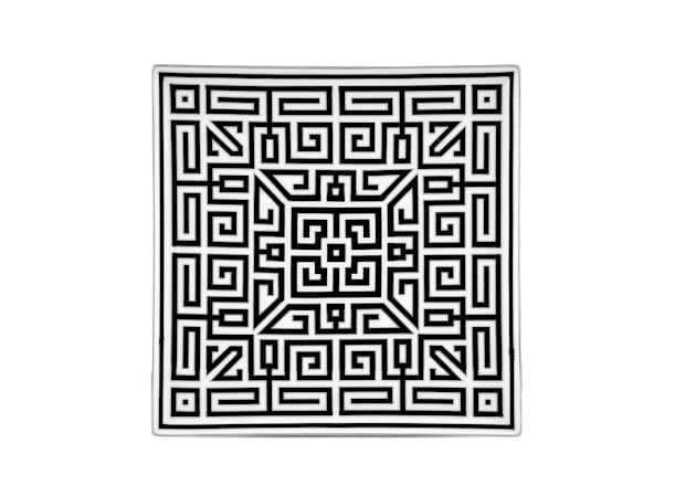 L’essenziale forma Impero, manifesto di rigore e di raffinata semplicità,accoglie il celebre motivo geometrico nero, che da vita a un sofisticatolabirinto di linee in cui perdersi. La preziosa filettatura in platino segue lasagoma quadrata per donare luminosità all’intero elemento. Pensato percompletare la mise en place con un design inaspettato e audace, è disponibileanche in altre varianti colore. È possibileanche utilizzarlo come svuotatasche per accogliere oggetti di valore e arredareogni ambiente. Labirinto è simbolo dell'arte della porcellana italiana e dellasua evoluzione. Nasce dal genio creativo di Gio Ponti ed esprime l’unione trainnovazione e tradizione come omaggio allo stile inconfondibile di Ginori 1735.