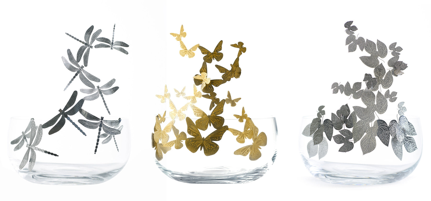Citazioni gratuite sulle stagioni per i tre soggetti di una linea ricca di significati simbolici forti e caratteristiche evocative, disponibili in acciaio inox lucidato o finitura in ottone: libellule fatate, foglie squisite o farfalle delicate.