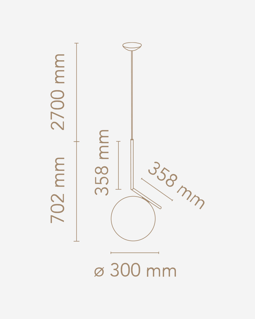 The opal glass sphere diffuses the light softly and without harsh shadows , ideal for creating atmosphere.