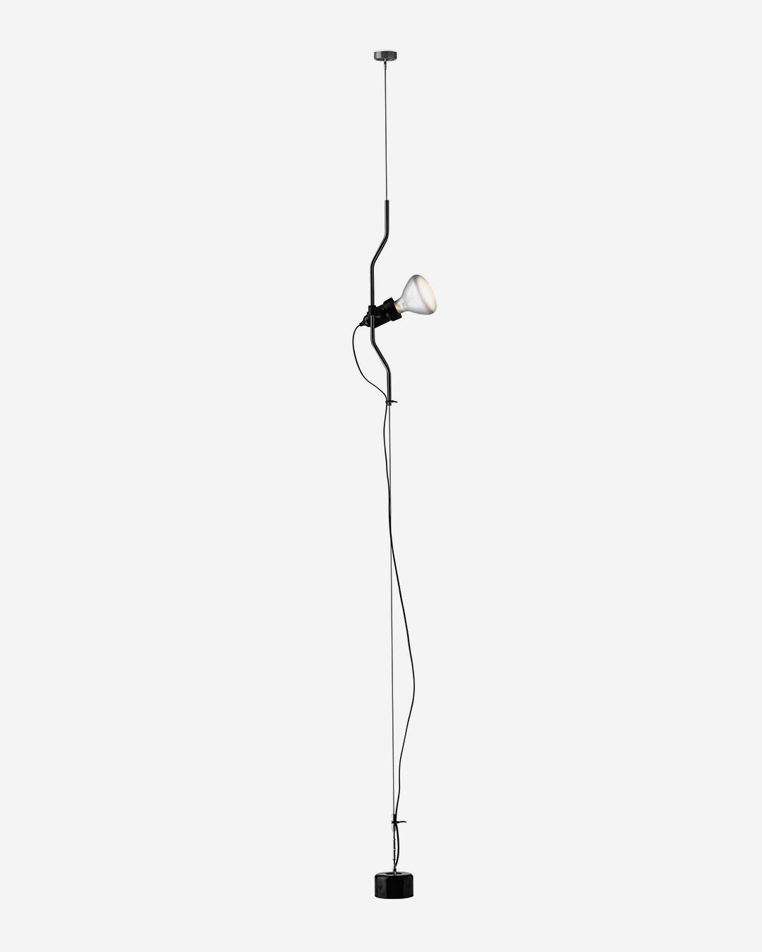 It is a hybrid lamp between a suspension and a floor lamp , which completely breaks the traditional lighting schemes, focusing on a functional, mobile, direct and technical, but aesthetically powerful concept .
