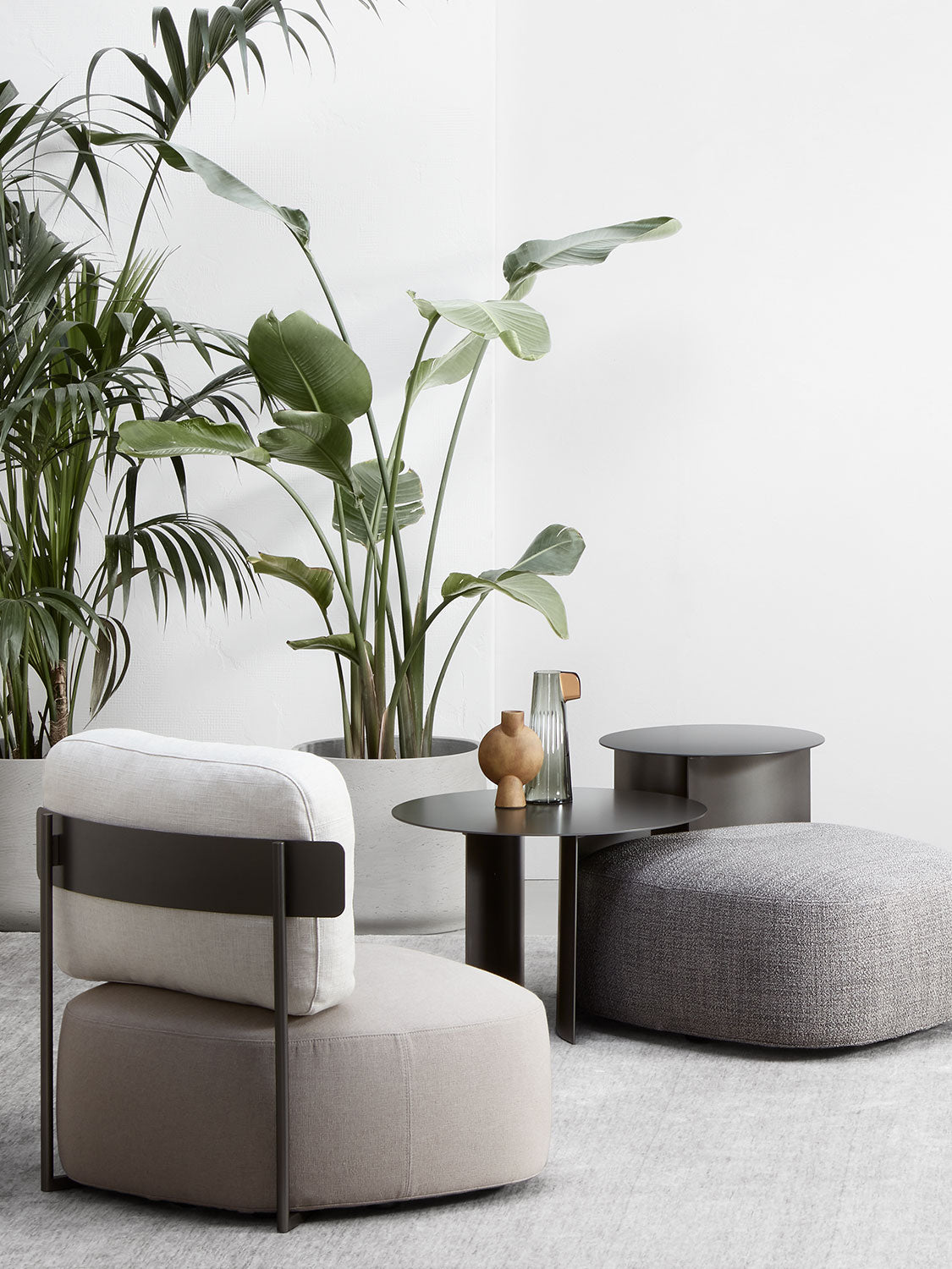 The generous and welcoming seat interacts with the lightness of the metal structure, creating a perfect balance between comfort and style. ( Optional backrest cushion available .)
