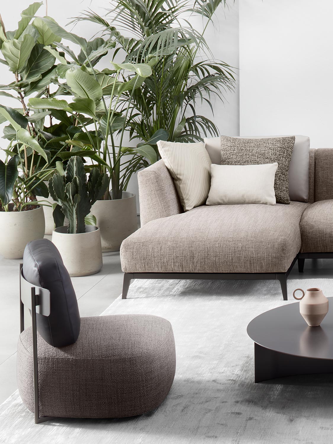 The Pierre armchair, designed by Carlo Colombo for Flou, is a contemporary piece of furniture with soft, compact lines.