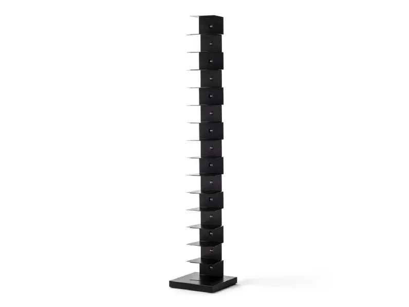 Original Ptolomeo è un contenitore che nasconde la sua forma per privilegiare il proprio contenuto, elimina il “superfluo” per mettere in evidenza il necessario, ovvero i libri. La libreria si presenta come una colonna in acciaio a cui sono unite delle sottili mensole anch’esse in acciaio. Mensole che scompaiono mano a mano che la colonna si riempie di libri, quando è colma Original Ptolomeo diviene del tutto impercettibile e sembra quasi che i libri posizionati su di essa si sorreggano da soli.