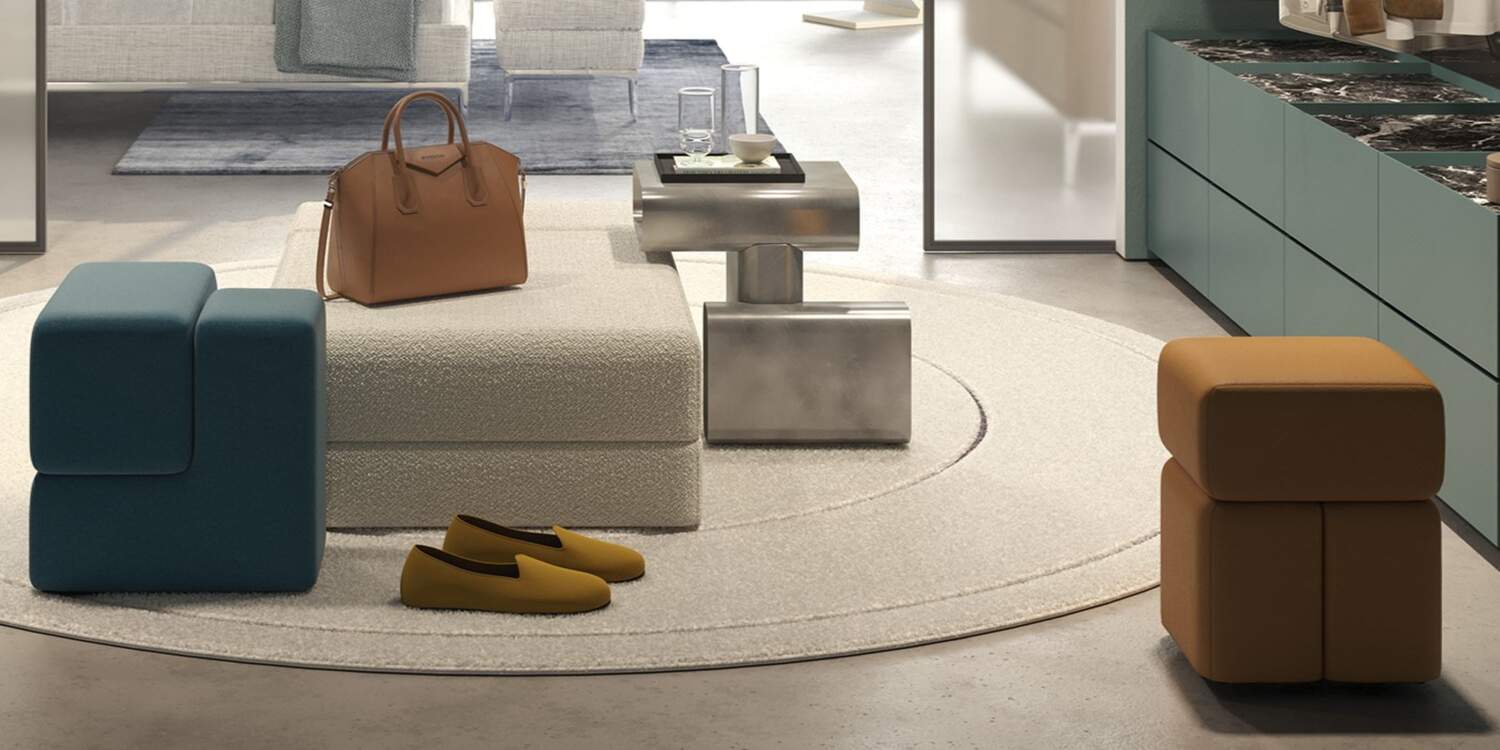 Ideal as an additional seat, footrest or modular complement, it fits harmoniously alongside sofas and armchairs from the same collection, creating visual and material continuity.