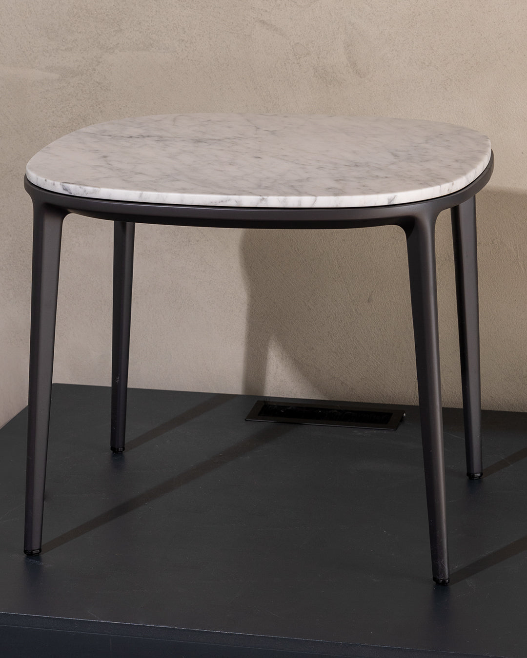These compact proportions make the table ideal as a support element next to sofas, armchairs or as a complement in waiting areas, bedrooms or contract lobbies.