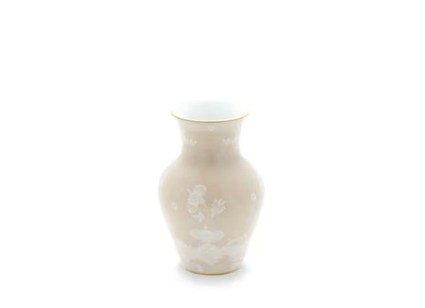 Caratterizzato da motivi bianchi e filettatura dorata, questo vaso in porcellana si distingue per l’originale nuance beige Meringa, che completa l'universo colorato e vibrante della collezione Oriente Italiano. Il suo colore caldo e avvolgente è perfetto per creare un'atmosfera intima e accogliente.