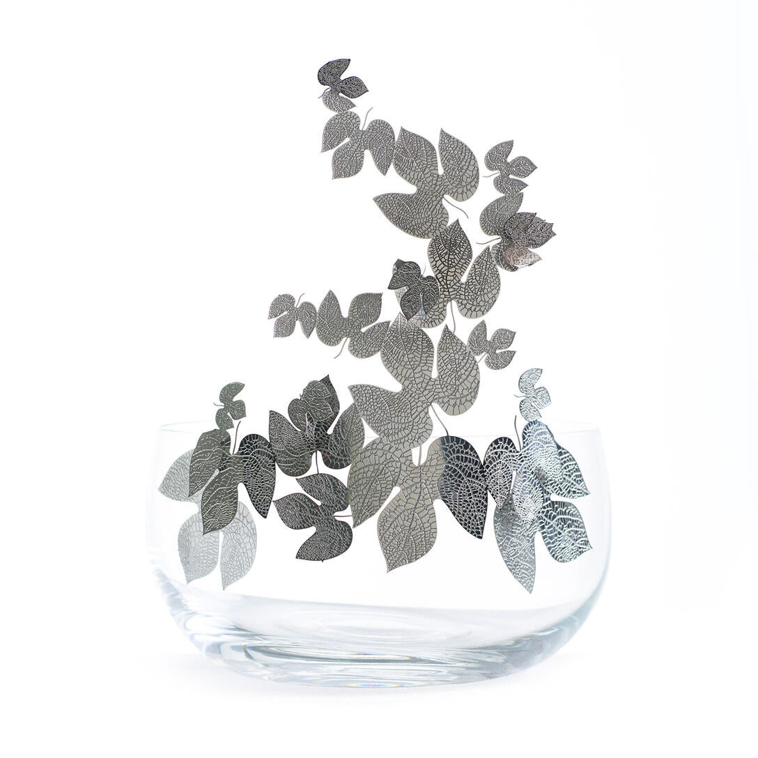 T Ciotola in cristallo di Boemia con decorazione rimovibile in metallo inciso.