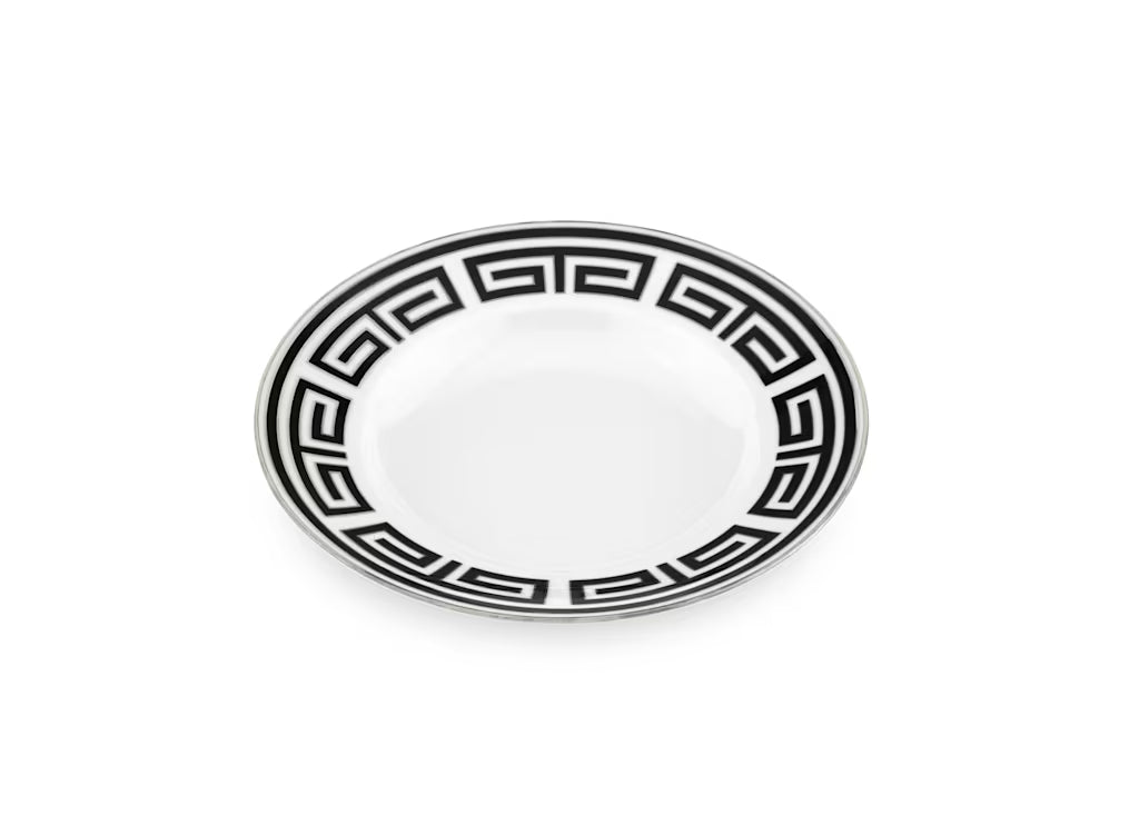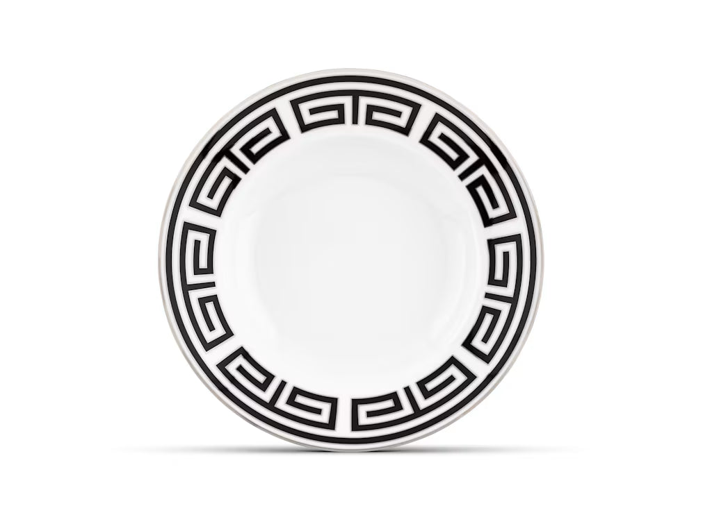 Piatto fondo in porcellana con decoro nero e platino. CollezioneLabirinto di Gio Ponti.